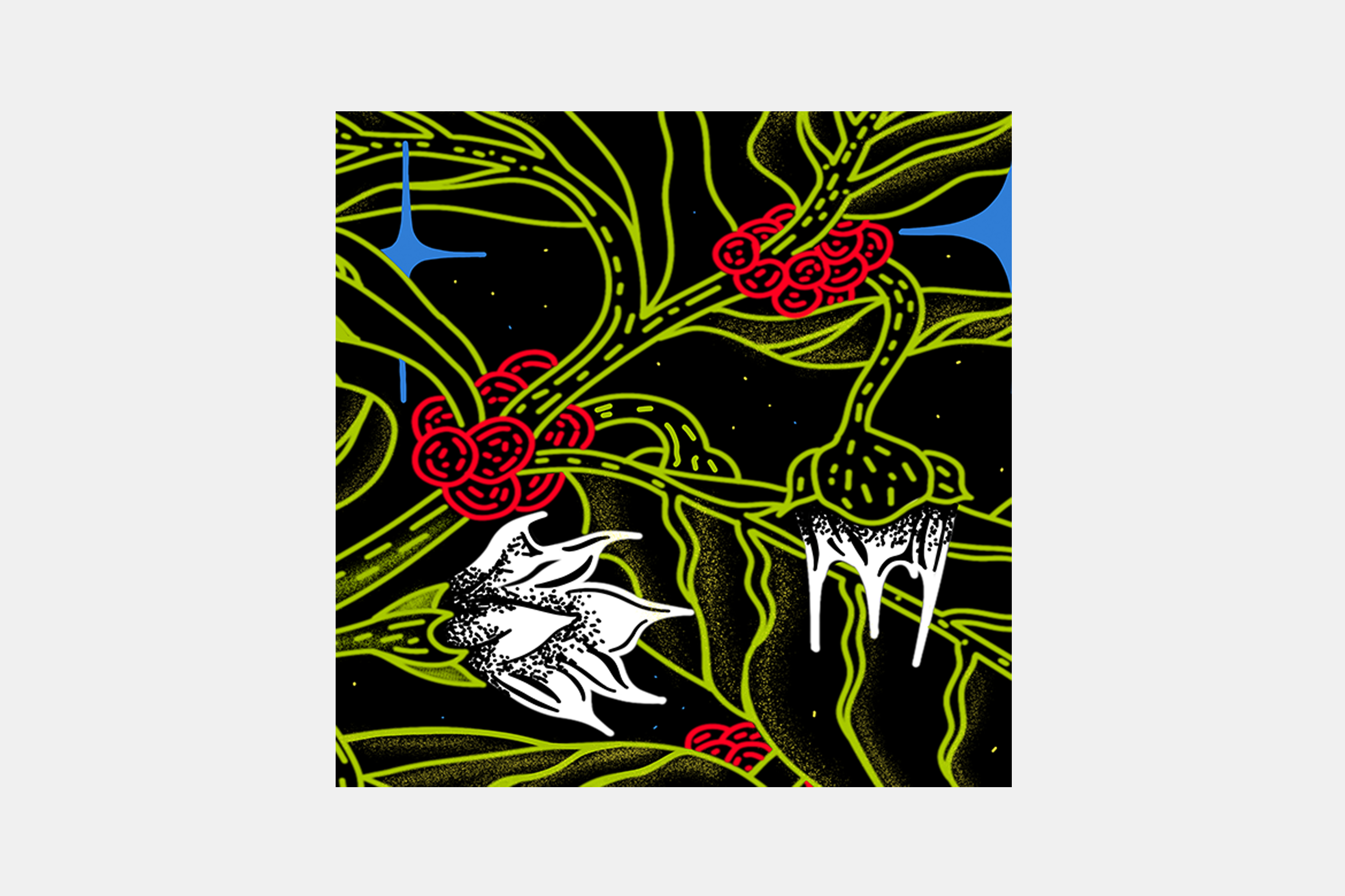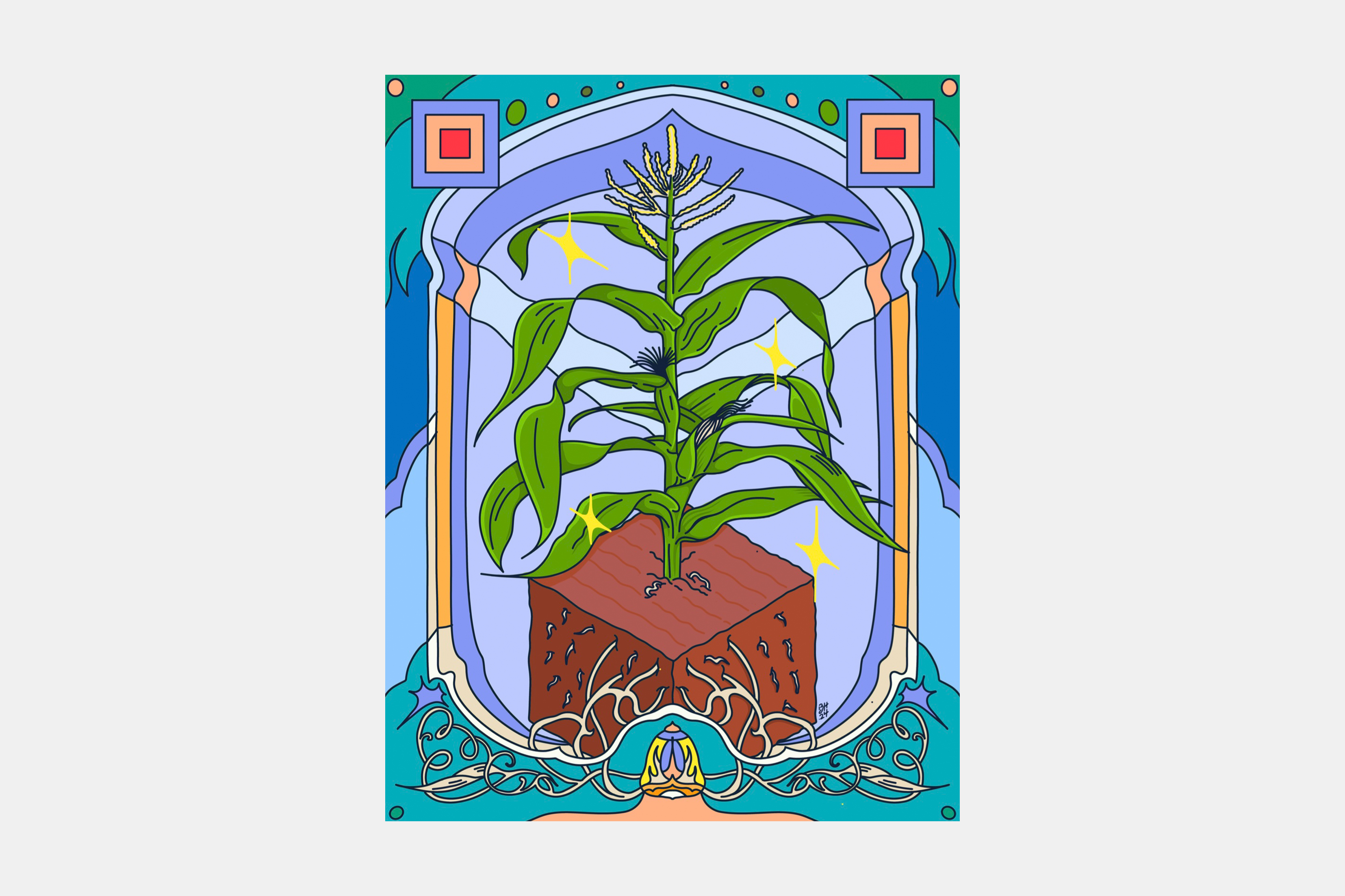 I work across painting, illustration, and design, developing visual systems that draw from reconstructed iconography, hybrid motifs, and speculative world-building. This aesthetic lens extends into my commercial work, where I use composition, color, and symbolic language to create imagery that is playful, research-based, and emotionally resonant.